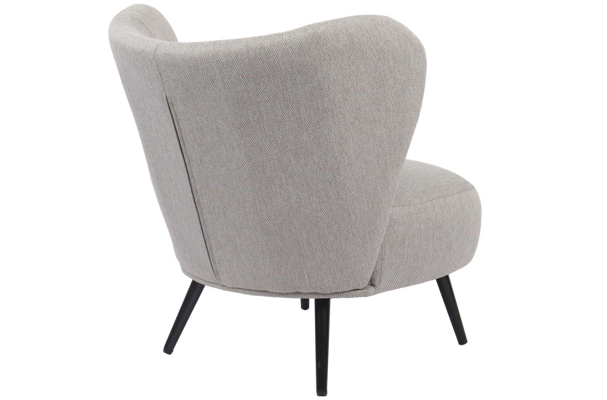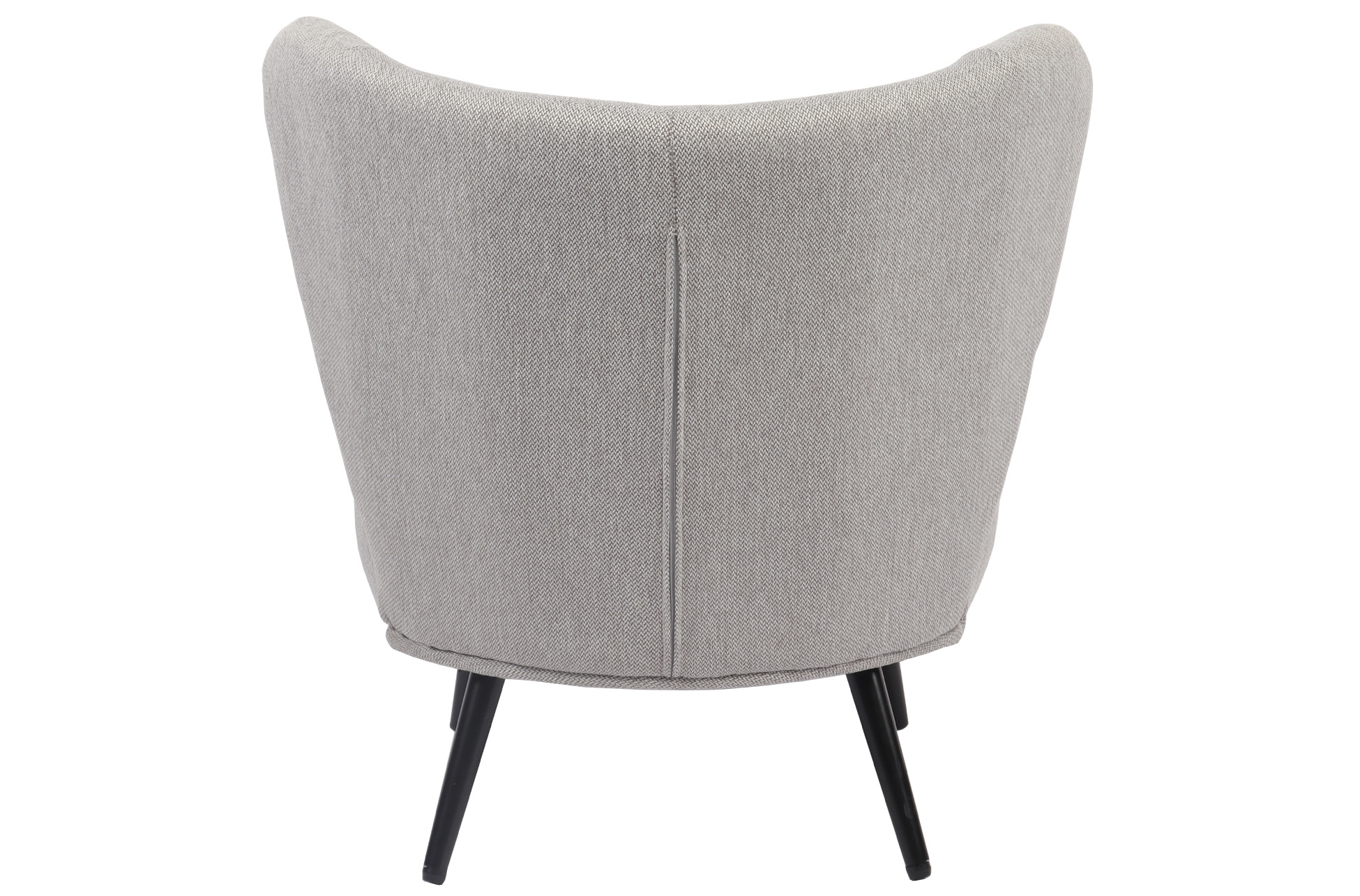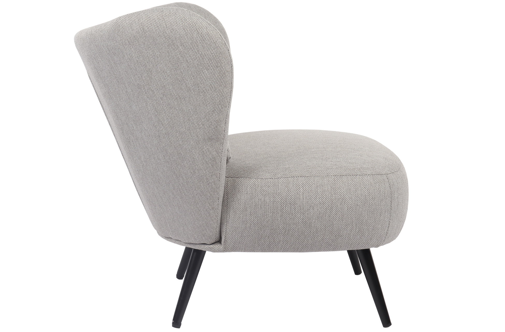 Butaca tapizada. Respaldo circular. Cojín lumbar incluido. Tejido gris melange. Patas metálicas en color negro. Medidas: 73,5 x 78 x 76 cm.