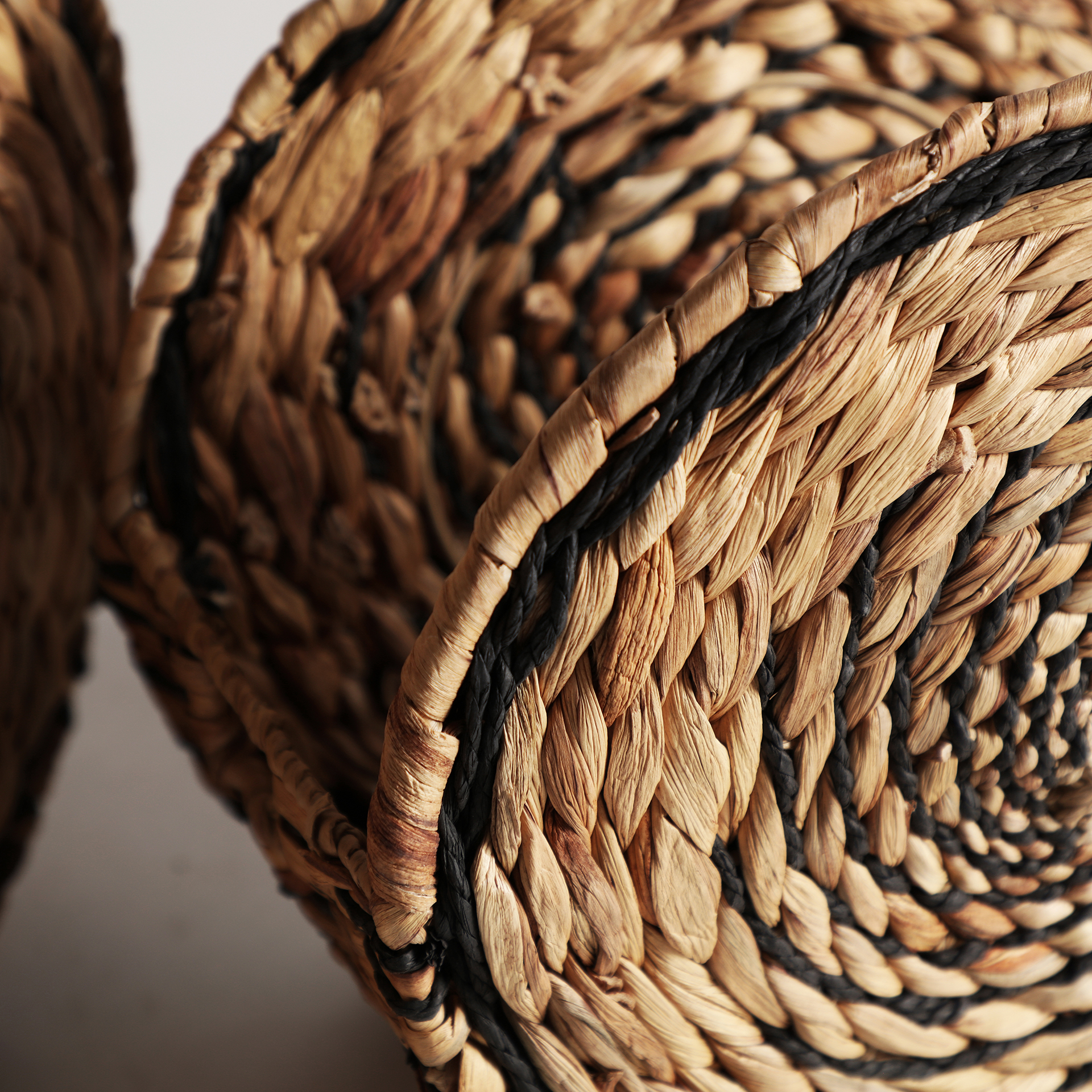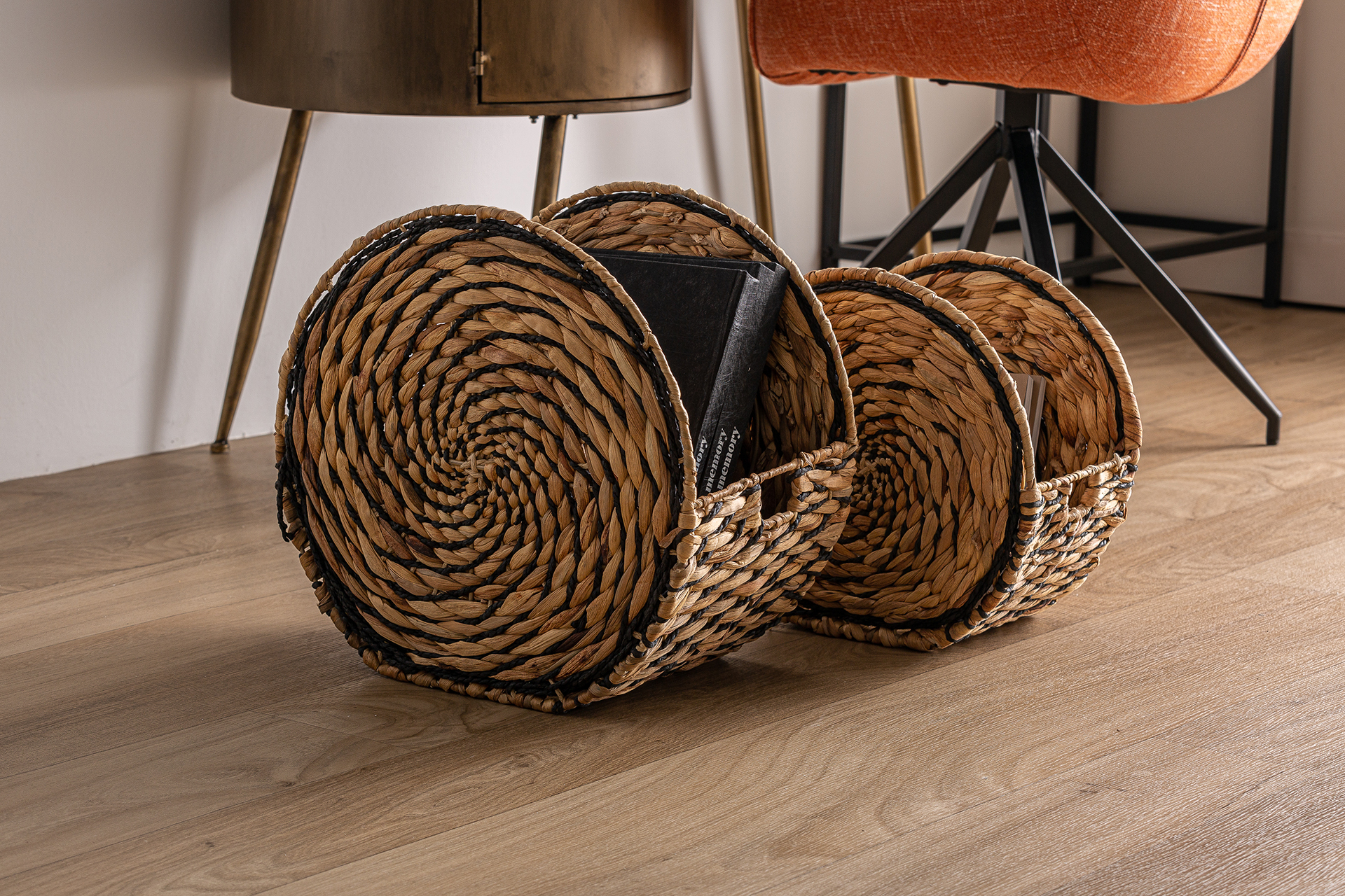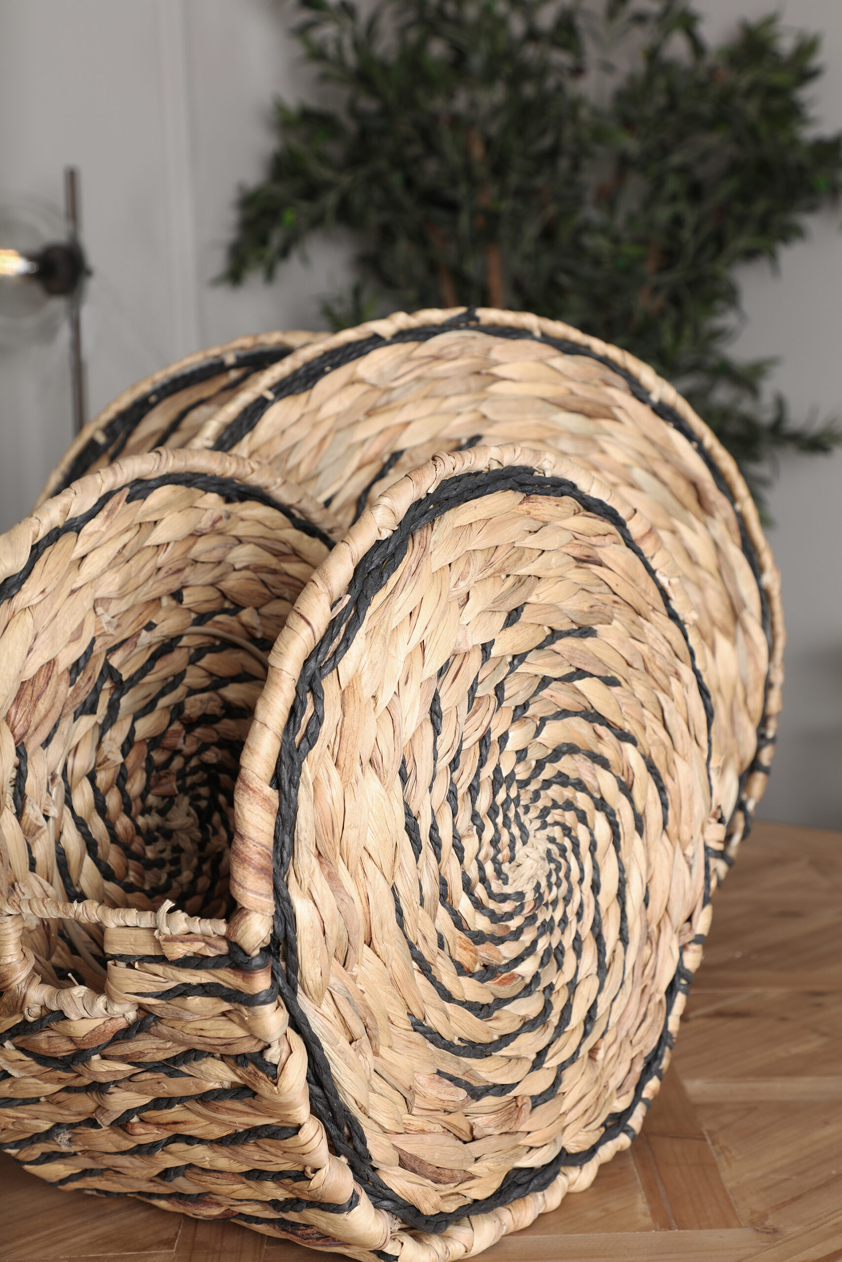 Cesto j/2 blair, en color negro/natural, de estilo boho. Fabricado en fibra natural, combinado con hierro y cuerda. LastDeco.