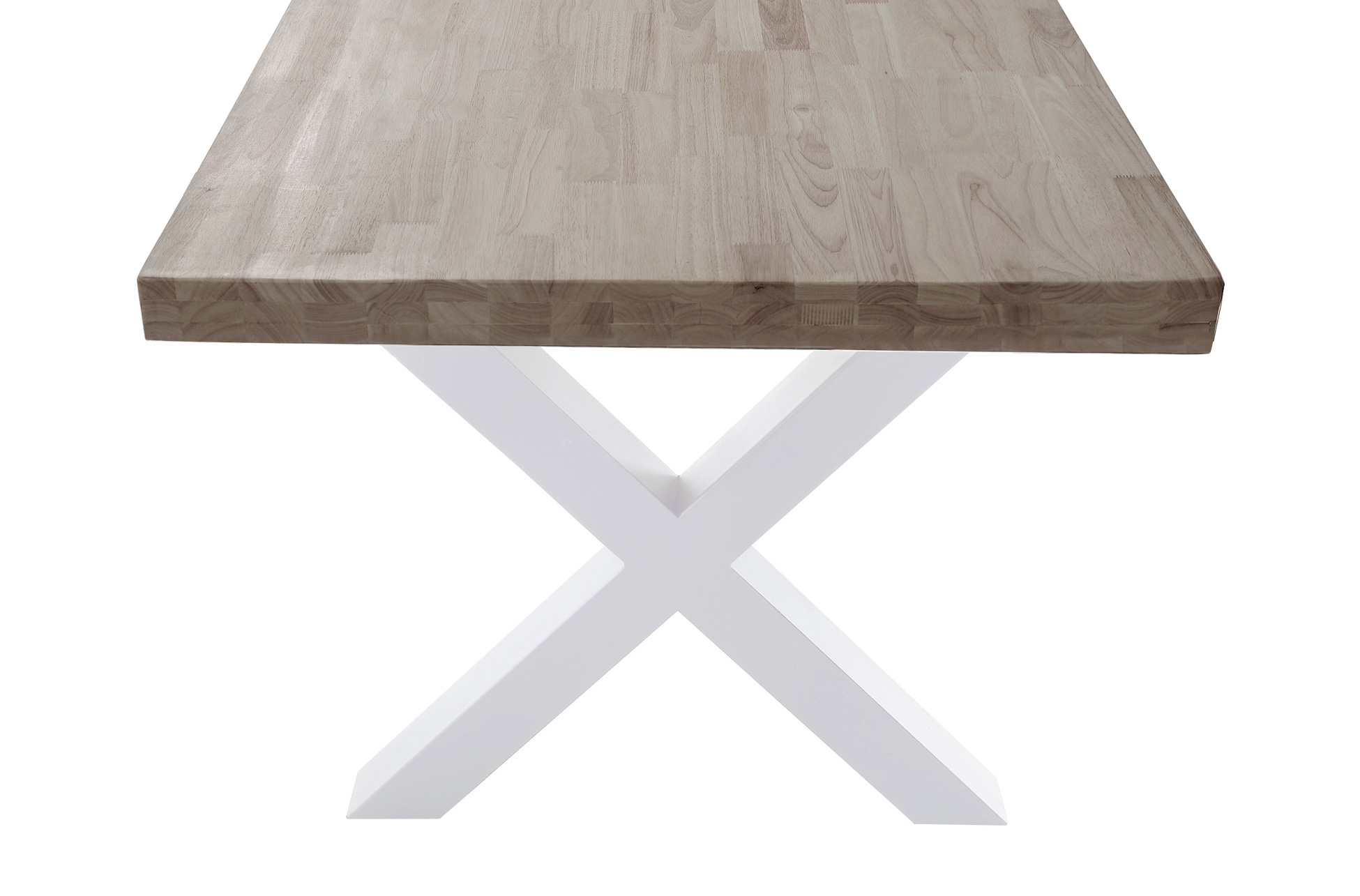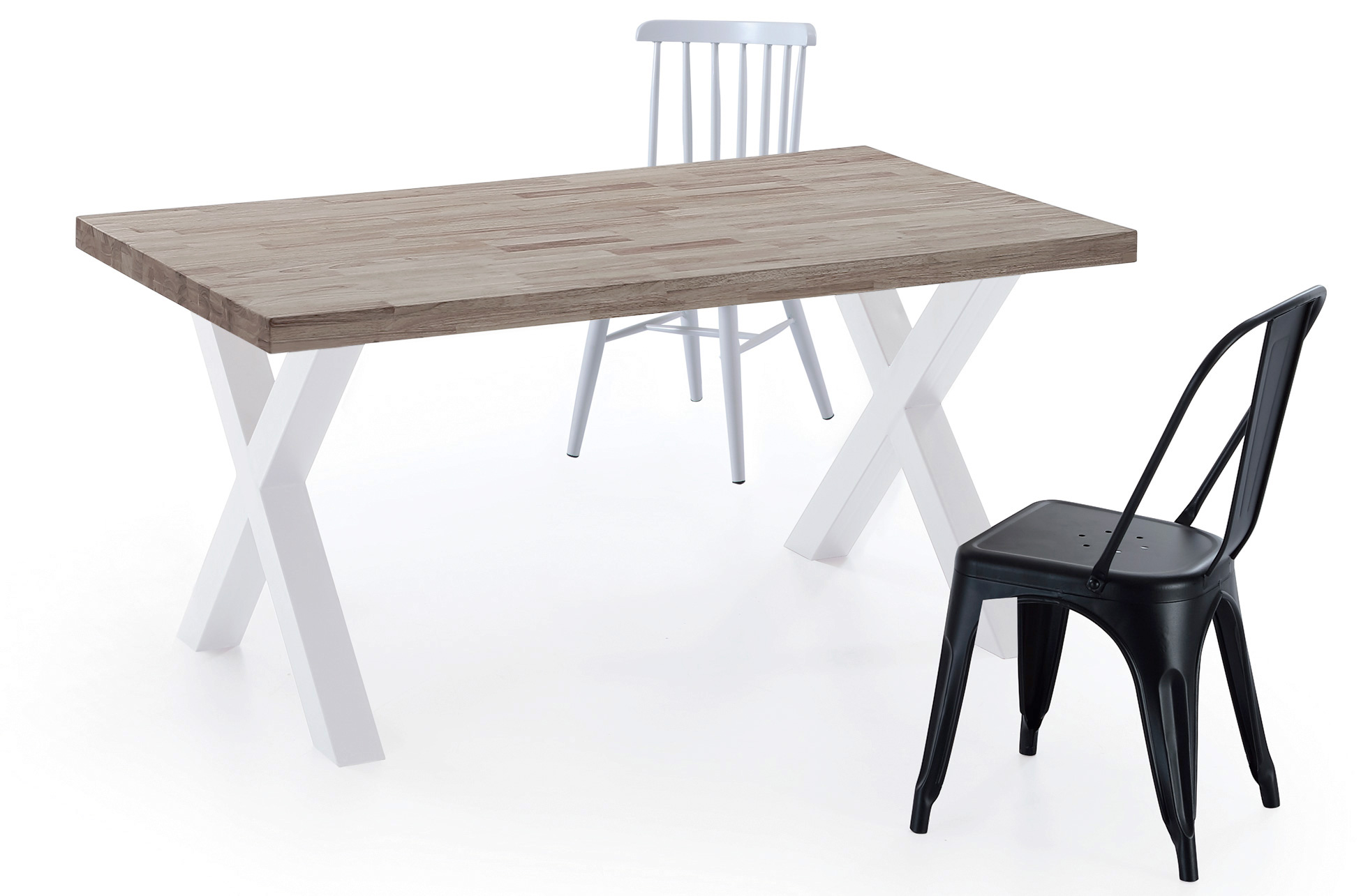 Mesa comedor fija modelo X-Loft 160. Tapa madera color roble american 54 mm grosor. Patas metálicas color blanco. Medidas 160 x 90 x 76 cm.