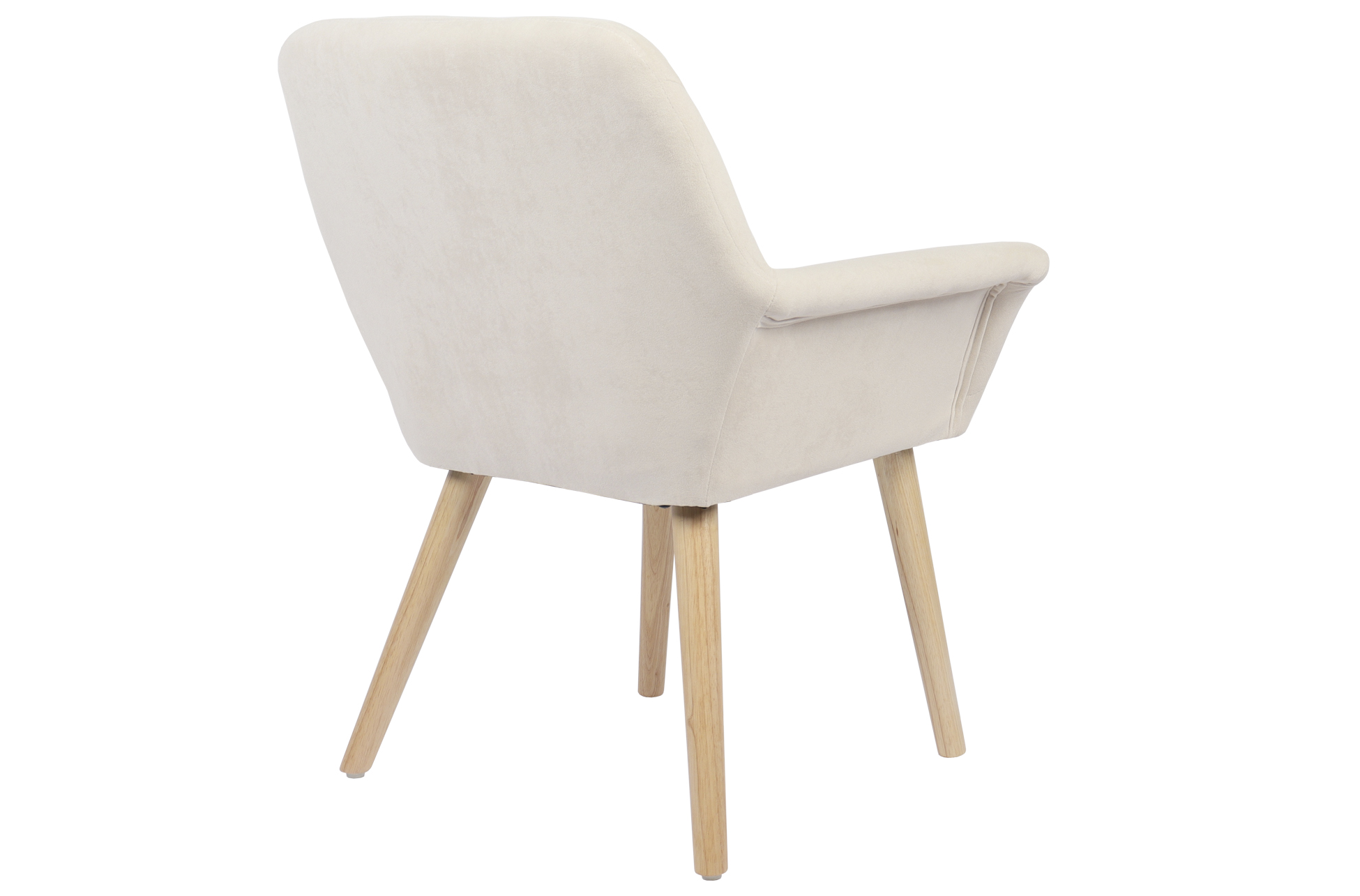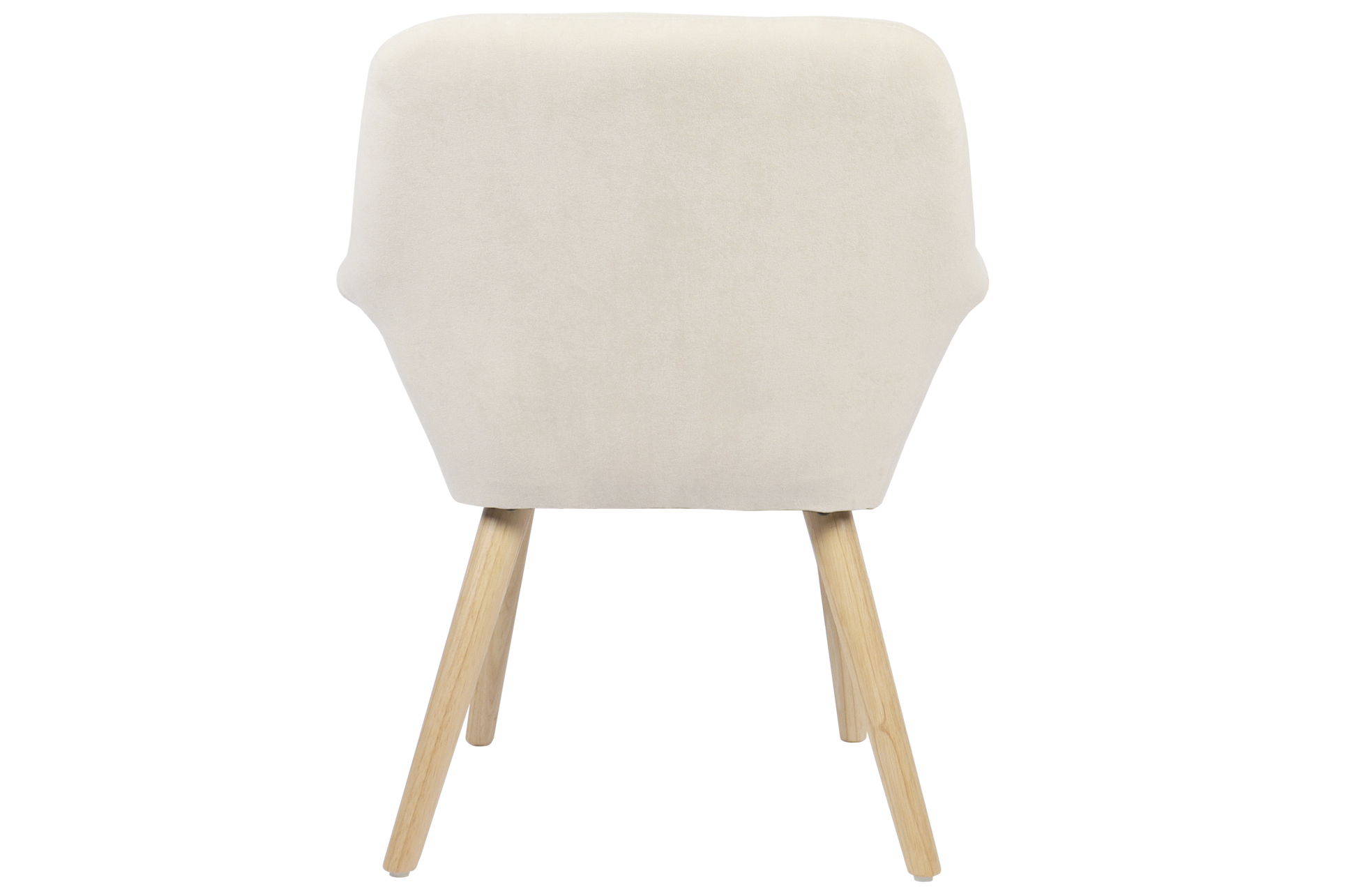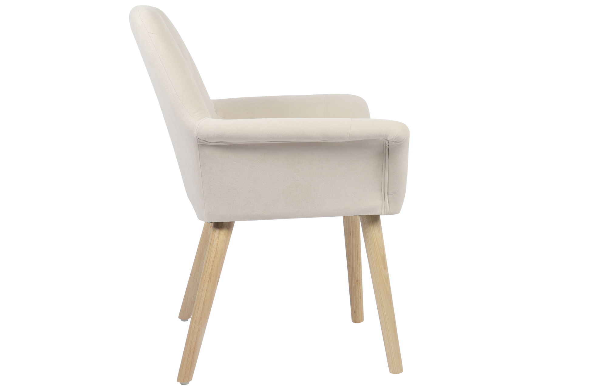 Silla comedor tapizada con apoyabrazos. Costuras decorativas. Patas en madera color natural. Tejido microfibra crema. Medidas: 67,5 x 64 x 82 cm.
